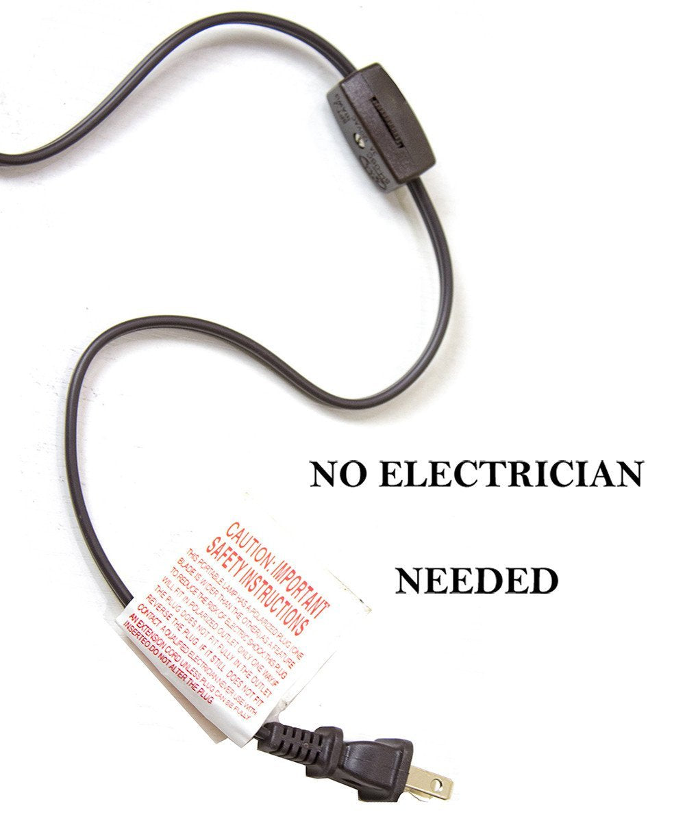 - Cord ends in a standard 2 prong wall plug to fit a standard power outlet