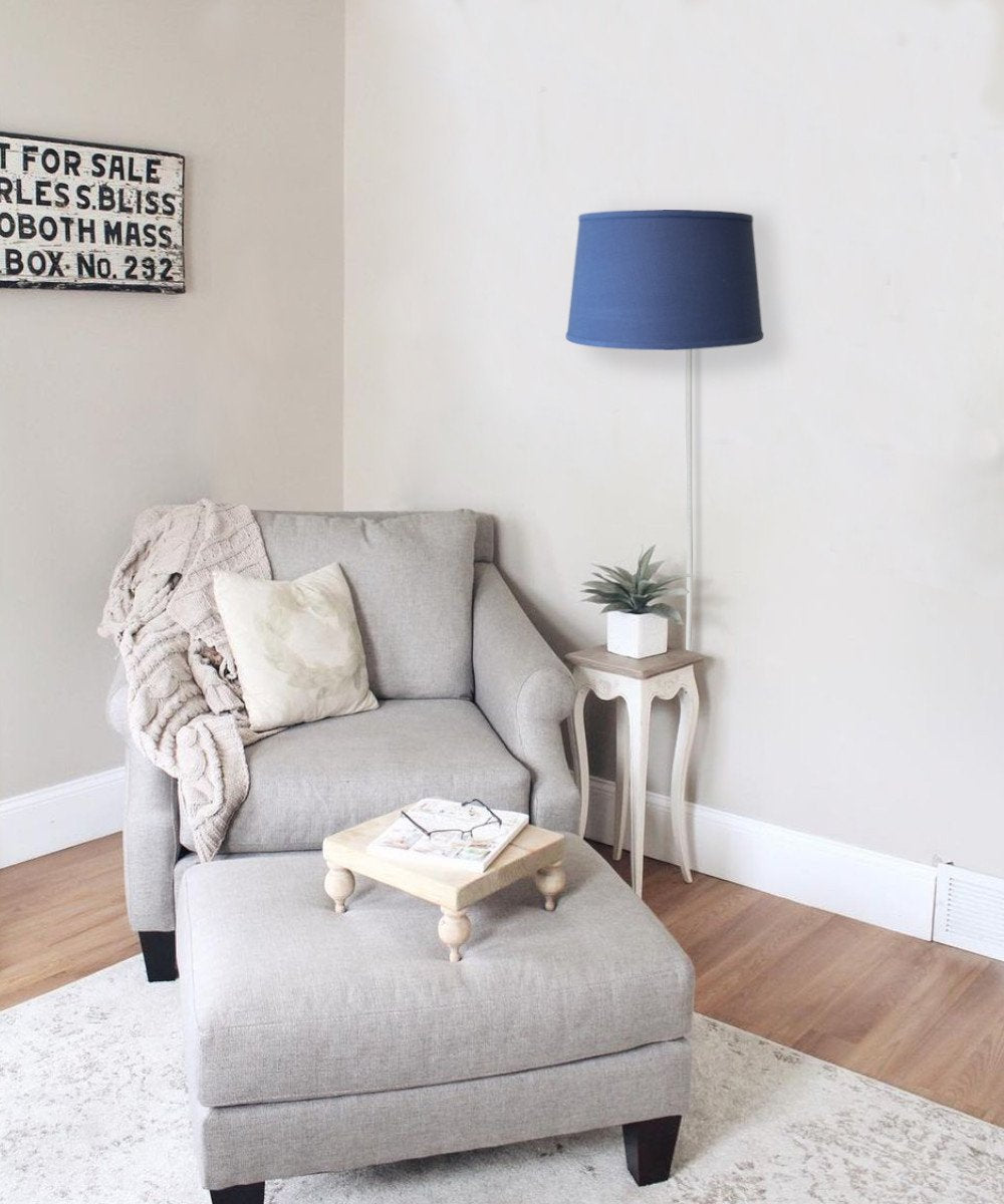 - TEXTURED SLATE BLUE FABRIC: Shade fabric textured slate blue is a favorite of designers for its depth and character and its ability to blend with most decor styles. Shade measures 14" top x 16" bottom x 10" slant height