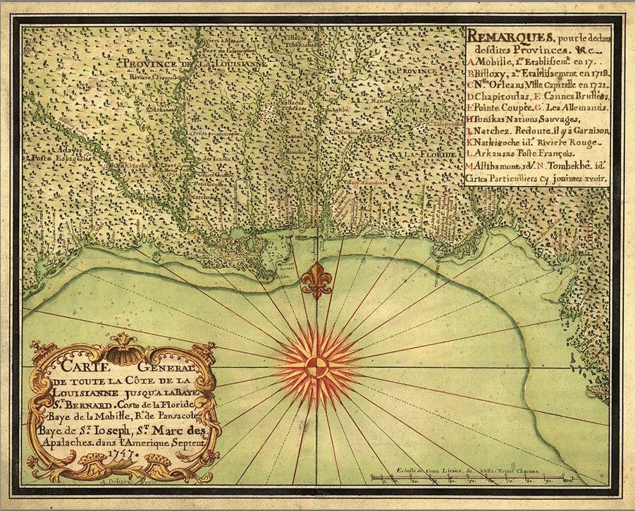 24" X 30" C1747 Map Of The Gulf Coast Vintage Poster Wall Art