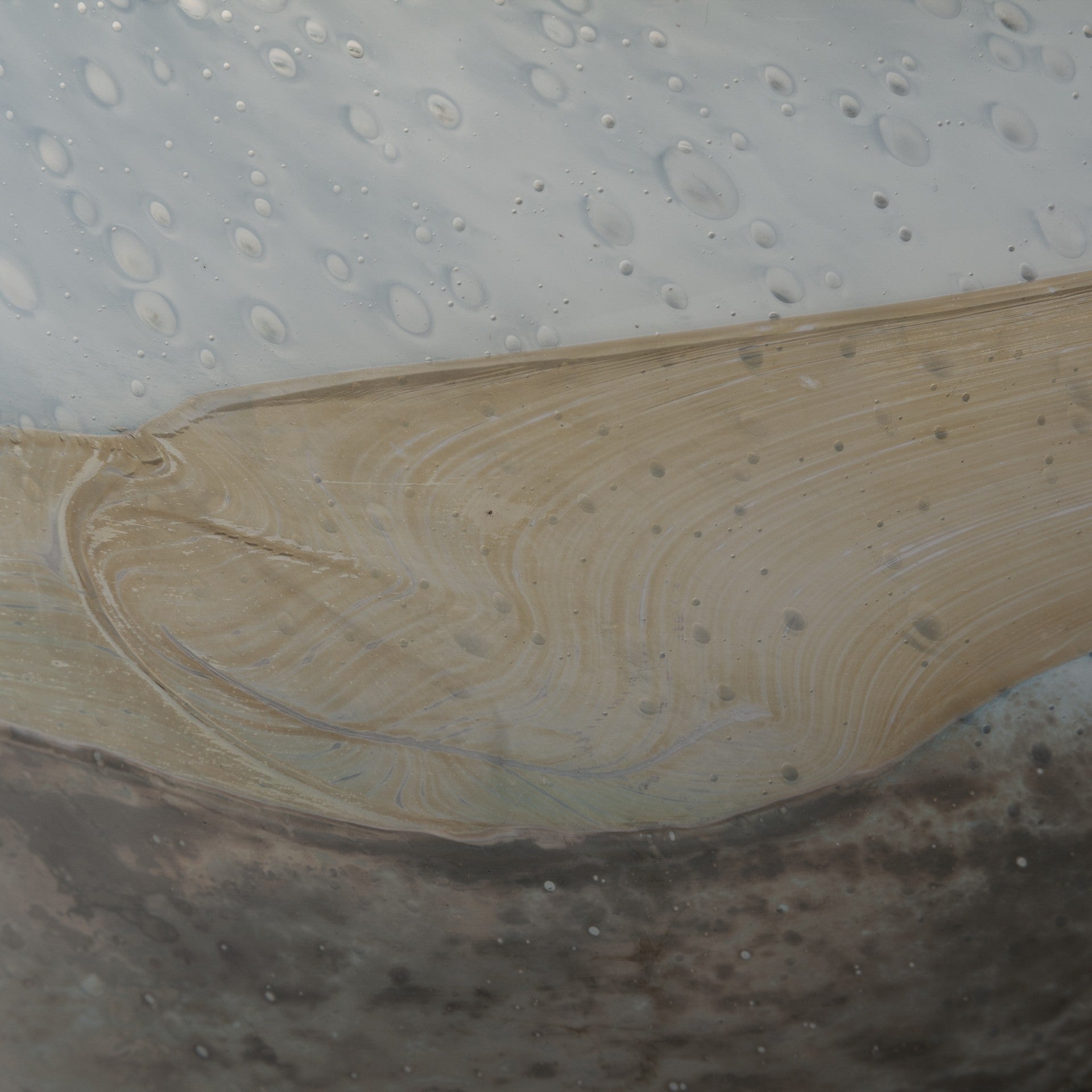 The 9-inch blue and brown seeded glass table vase is an elegant addition to any home decor. This stunning vase features a beautiful blend of calming shades of blue and brown hues in seeded glass. The unique bubble glass adds depth and character, making it an eye-catching centerpiece for your dining or living area. Ideal for displaying fresh flowers or as a standalone decorative piece, this vase effortlessly complements various interior styles and enhances your overall aesthetic. Elevate your home decor with this stylish and functional table vase designed to impress. 9-inch h x 10-inch w x 10-inch d.