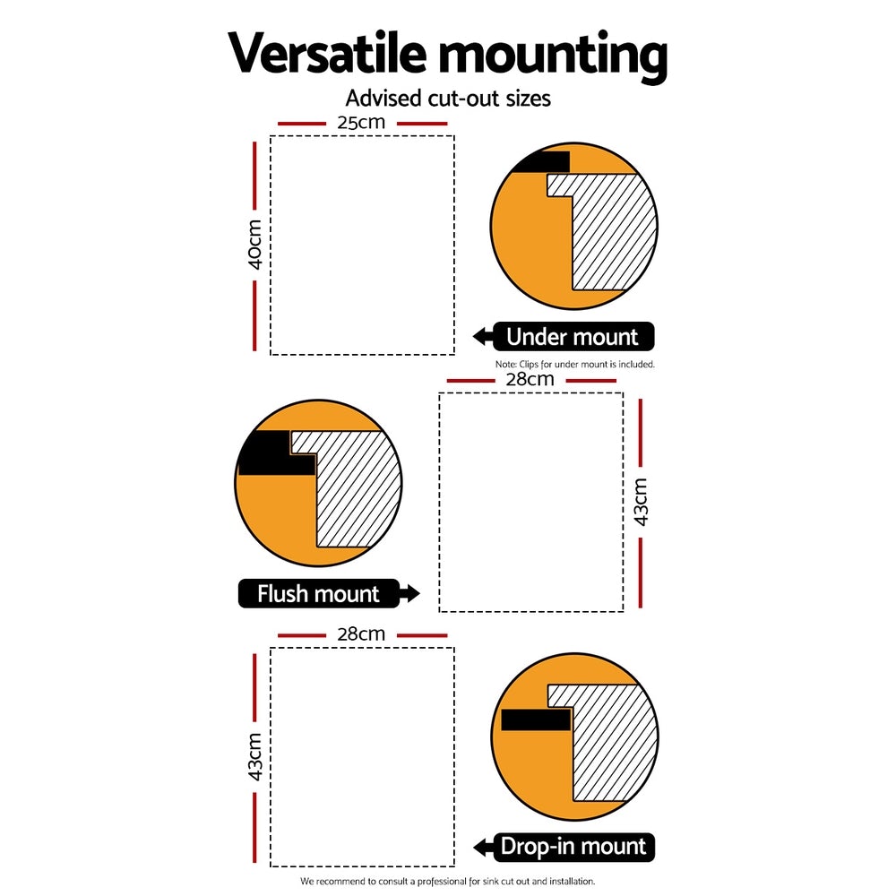 Cefito 30cm x 45cm Stainless Steel Kitchen Sink Under/Top/Flush Mount