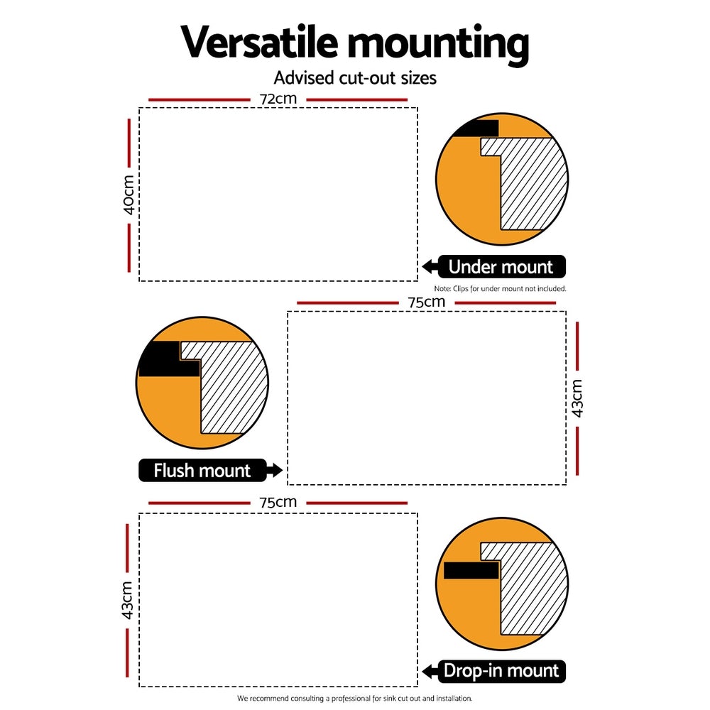 Cefito 77cm x 45cm Stainless Steel Kitchen Sink Under/Top/Flush Mount
