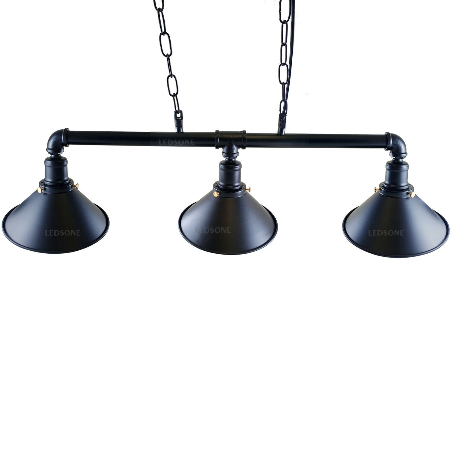 - Vintage Industrial Black Metal Pipe 3 Scone Cup Lamp Ceiling Pendant Fixture
