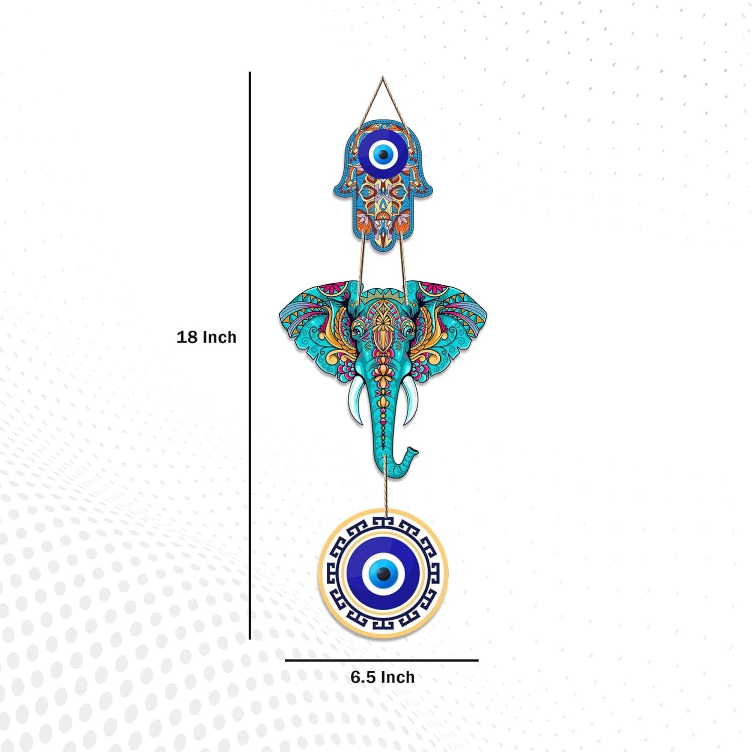 esigner Elephant Wooden Wall Hanging for Home Decor | Hamsa Hand Decoration for Livingroom | Modern Artworks Items | Peace Charm Door Accent Decorative Hangings