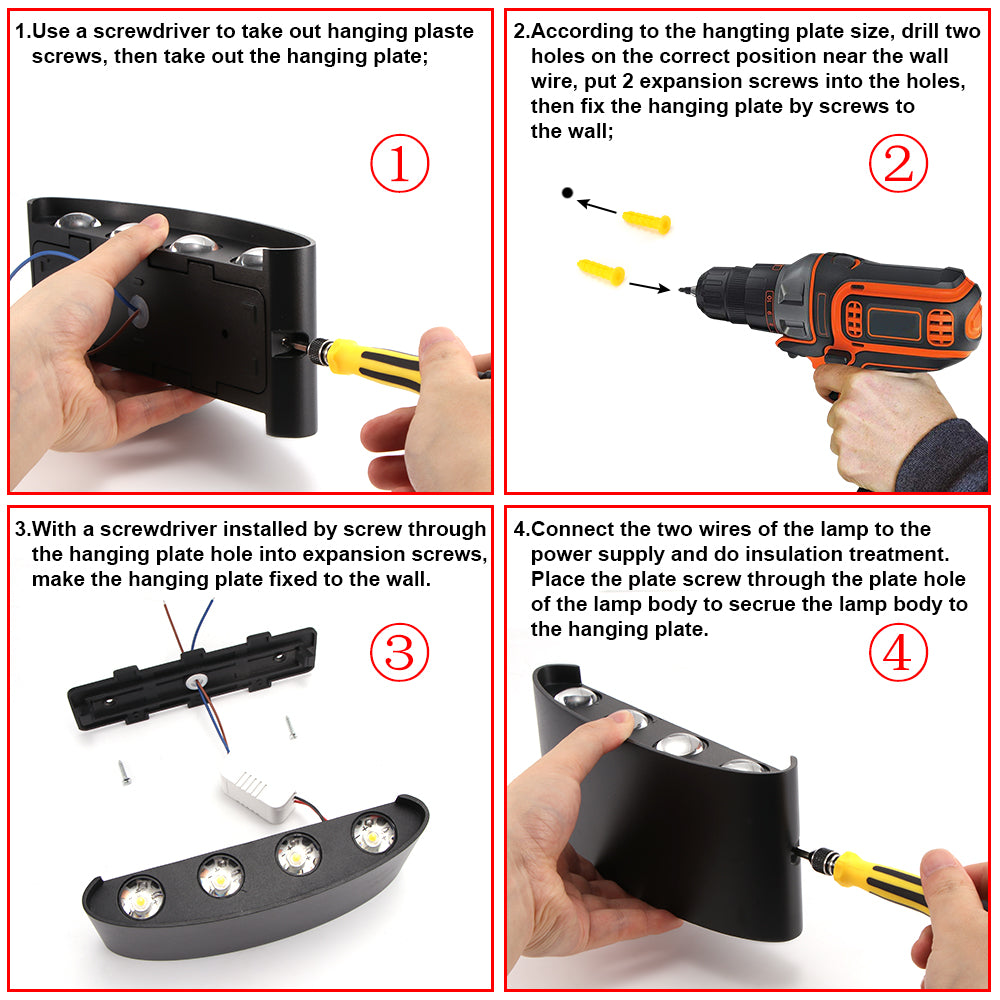 Easy to install.? mounted the light on the wall through screw and expansion pillar-hinge in the horizontal direction.