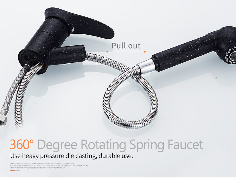 Kitchen Faucets Grifos De Cocina Swivel Pull Out Kitchen Sink Faucet Water-Saving black Basin Crane Mixer Brass