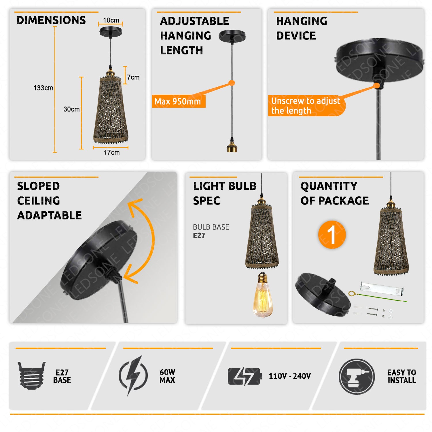 - This Rattan hanging Pendant Light combines vintage and simple style, ideal for many occasions.