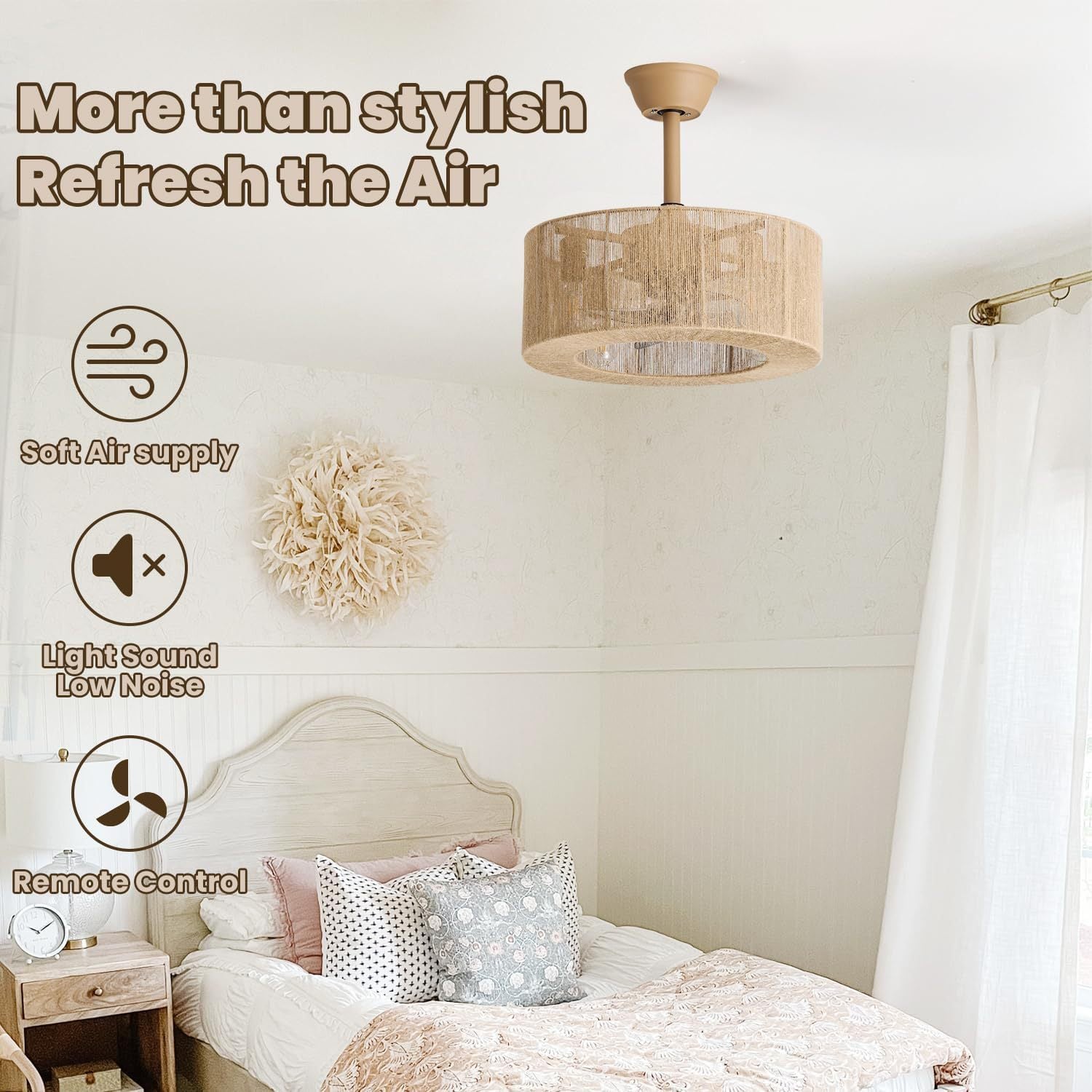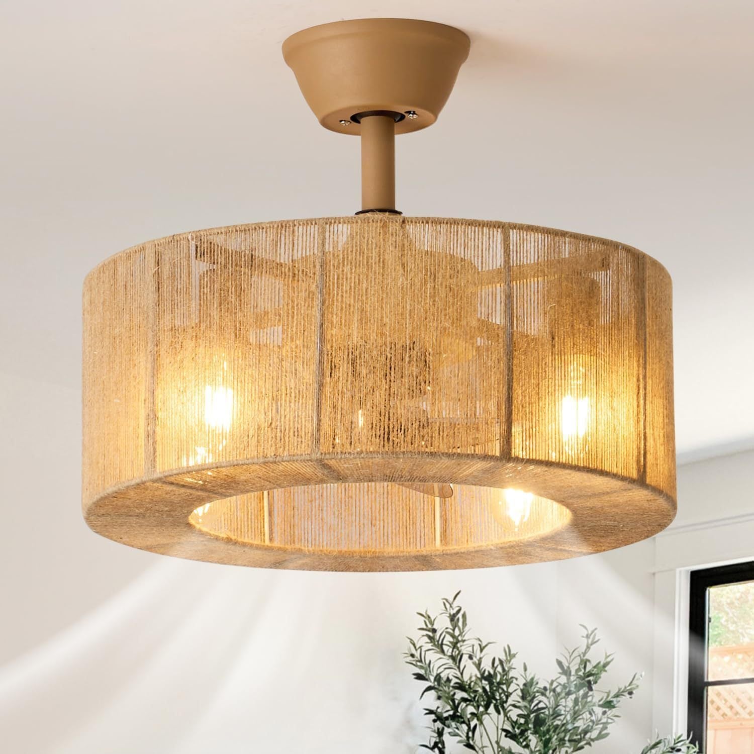 Rattan Weaving Fan Lamp Retro Living Room Restaurant Bedroom Light
