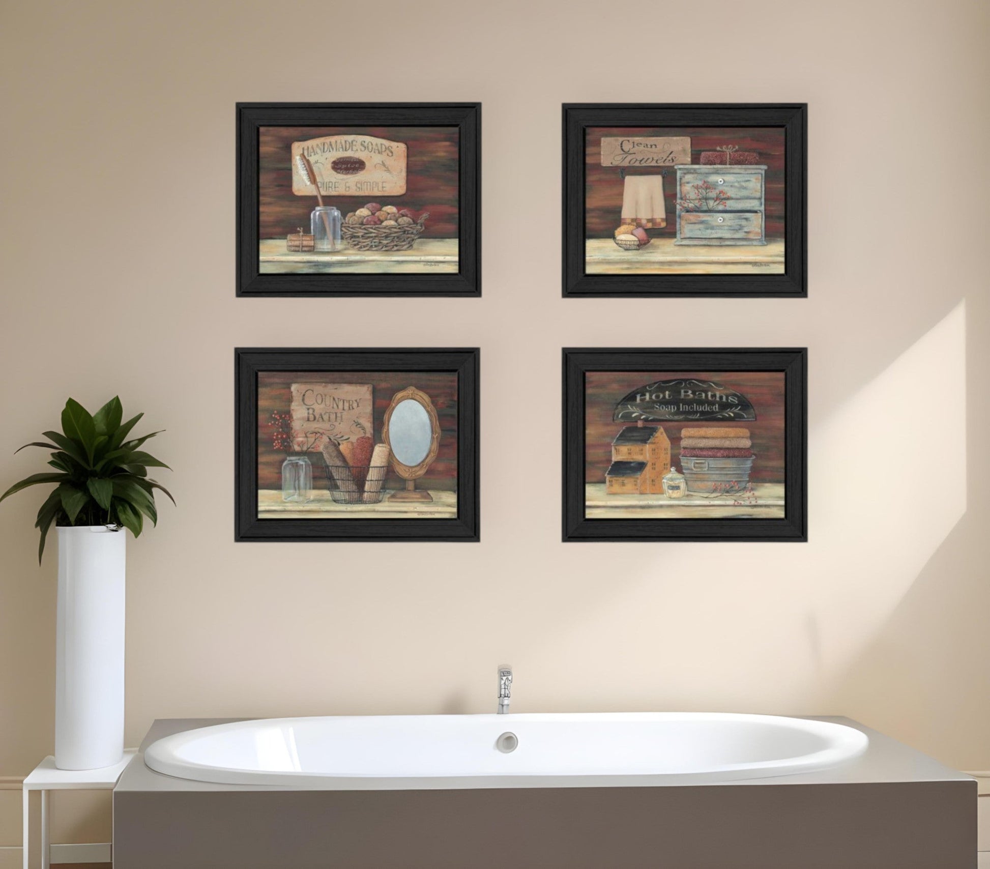 Unique and decorative, this set of four bathroom i black framed print bathroom wall art will leave a lasting impression. This print is a visual artistic expression that allows you to decorate your space in style. Reproduced for you on paper, this hanging decorative accent will be a trendy and fashionable way to dress your walls. Hang on your wall to add some up to date fashion and decoration. Instantly liven up your space with this art that brings color and dimension to your walls. 16-inch H x 52-inch W x 1.5-inch D