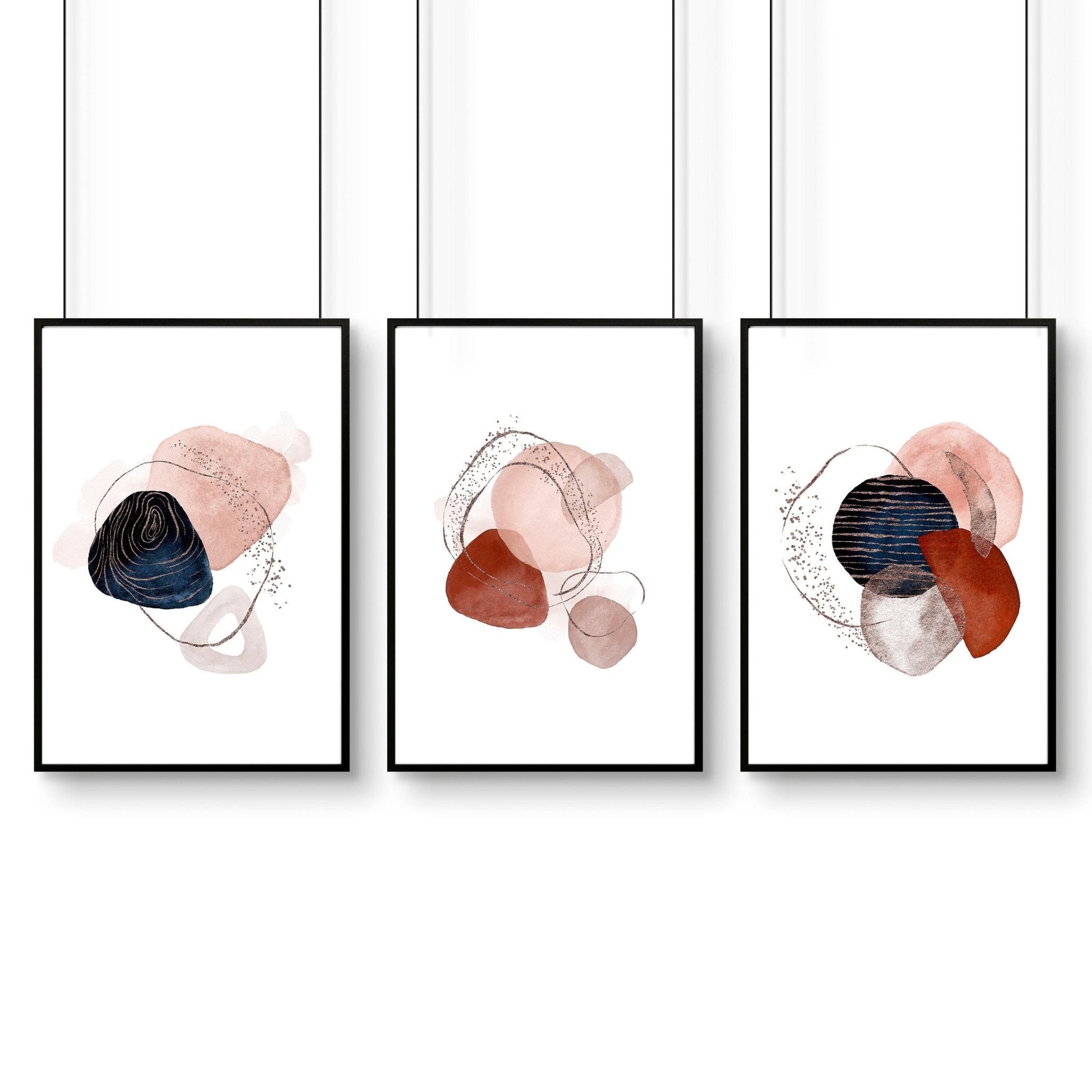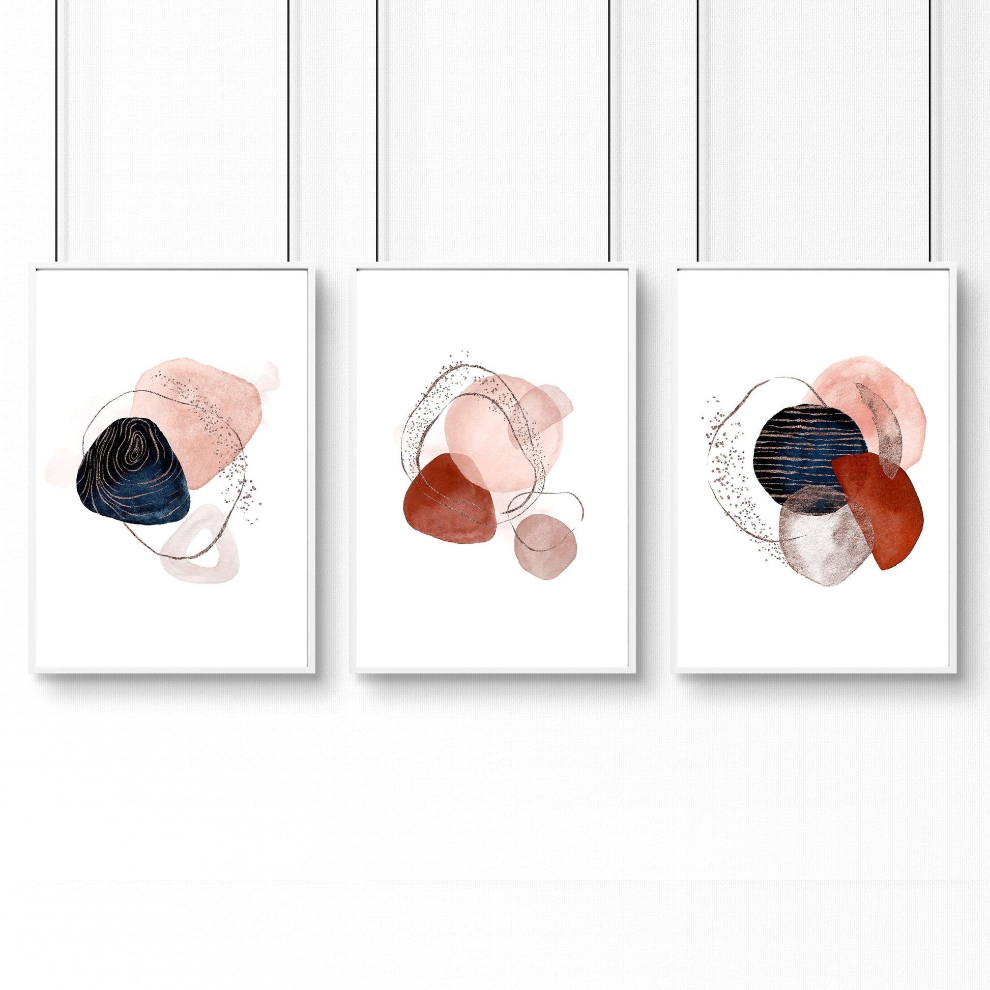 Revitalize your office space with our captivating set of three wall art prints, each a masterpiece of modern abstract art. This collection features a dynamic interplay of colours, including the bold presence of Navy Blue, the warmth of Terracotta, the softness of blush pink, and the opulence of gold, resulting in an ensemble that adds a contemporary and artistic touch to your workspace.