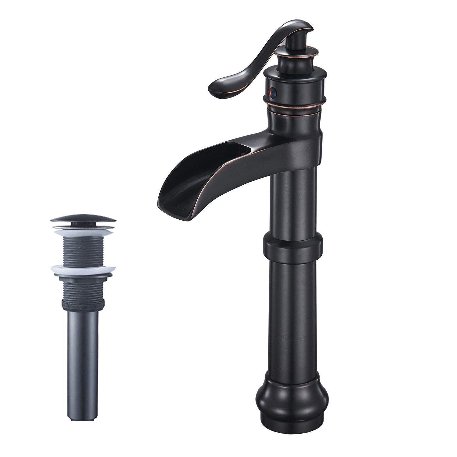 Charming and simplistic,BWE Waterfall Bathroom Sink Faucet is a brilliant accessory for your bathroom.BWE always uses the best material to bring the best guarantee and quality to our customers.The faucet's low lead solid brass fabricated body ensures the service life of faucet and best water experience for customers.It is available in multiple finishes and is perfect for bathrooms with contemporary and farmhouse styles.We are committed to 100% original design,products design inspiration comes from the shape of Natural Waterfall,International Chess,Aladdin's Lamp,Kerosene Lamp,Roman Column,etc.Waterfall Spout : The bathroom faucet provides a clear and steady laminar stream, that provides a beautiful water presentation. Single lever design for effortless flow and temperature controlFinish : Matte black finish creates an antique look. From its durable, long-lasting construction to the contemporary and decor-complementing design, this faucet belongs in your bathroomSingle Handle Faucet : Single-handle bathroom faucet for easy adjustments to a powerful waterfall stream. Included pop up drain without overflowErgonomic Design : This faucet is built with a high standard criteria for water efficiency without sacrificing water pressure or overall performance. Complete with hot and cold water hoses and accessoriesEasy to Install : Super easy to install and clean this single hole bathroom faucet. Brief design makes it possible to install it all by yourselfTo prevent collision during transportation, the package with foam inside which plays an important protective role.Material: Low Lead Brass ensuring quality and longevity, lead percentage less than 0.25%, comply with NSF61 and NSF372.Product testing: 24h acid salt spray test passed?100% pressure system testedUse the long screw which makes the installation easier and faster, you can install it by yourself.Add filter screen inside the hose to eliminate hose blockage