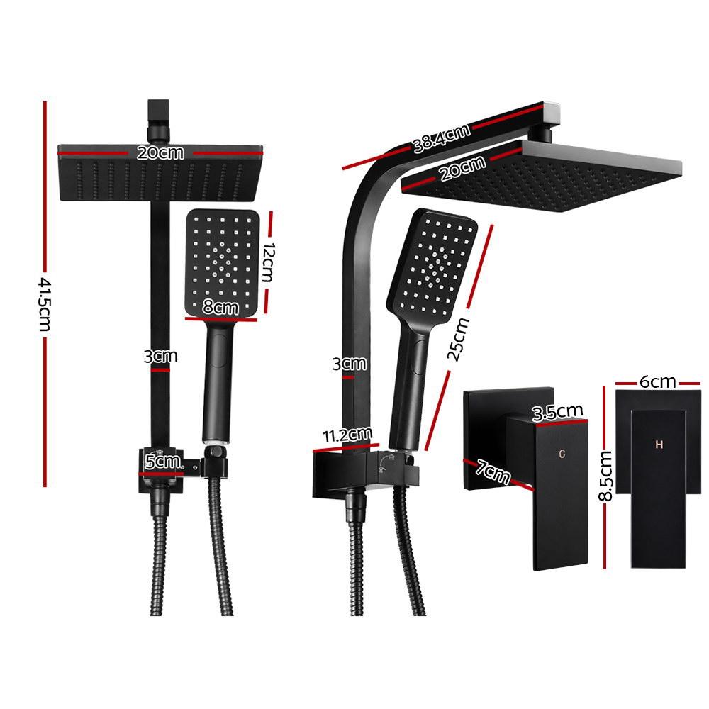 Cefito 8'' Rain Shower Head Set Handheld Round High Pressure Twins Tap